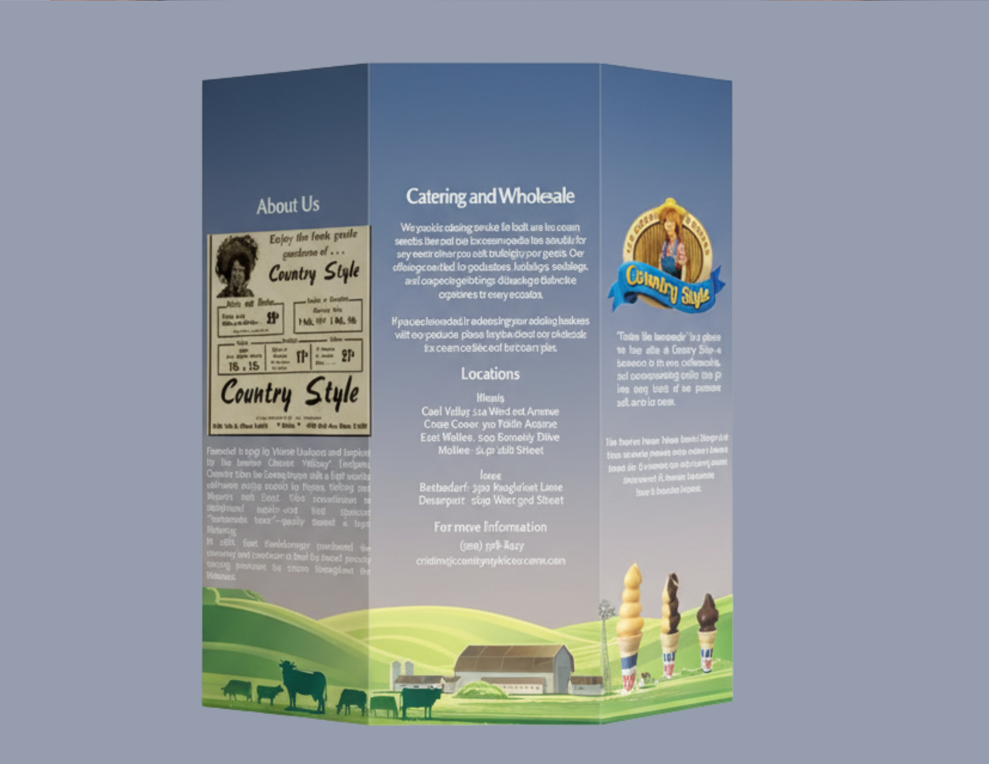 I designed a tri-fold brochure for Country Style to showcase their catering and wholesale services while staying true to the brand’s warm, nostalgic identity. The layout balances vintage-inspired typography with modern structure, guiding readers clearly through services, locations, and contact information. I incorporated farm-themed illustrations and soft, natural tones to reinforce the company’s roots and create a cohesive, inviting feel. This project highlights my ability to combine brand storytelling with clean, functional design for both print and promotional use.